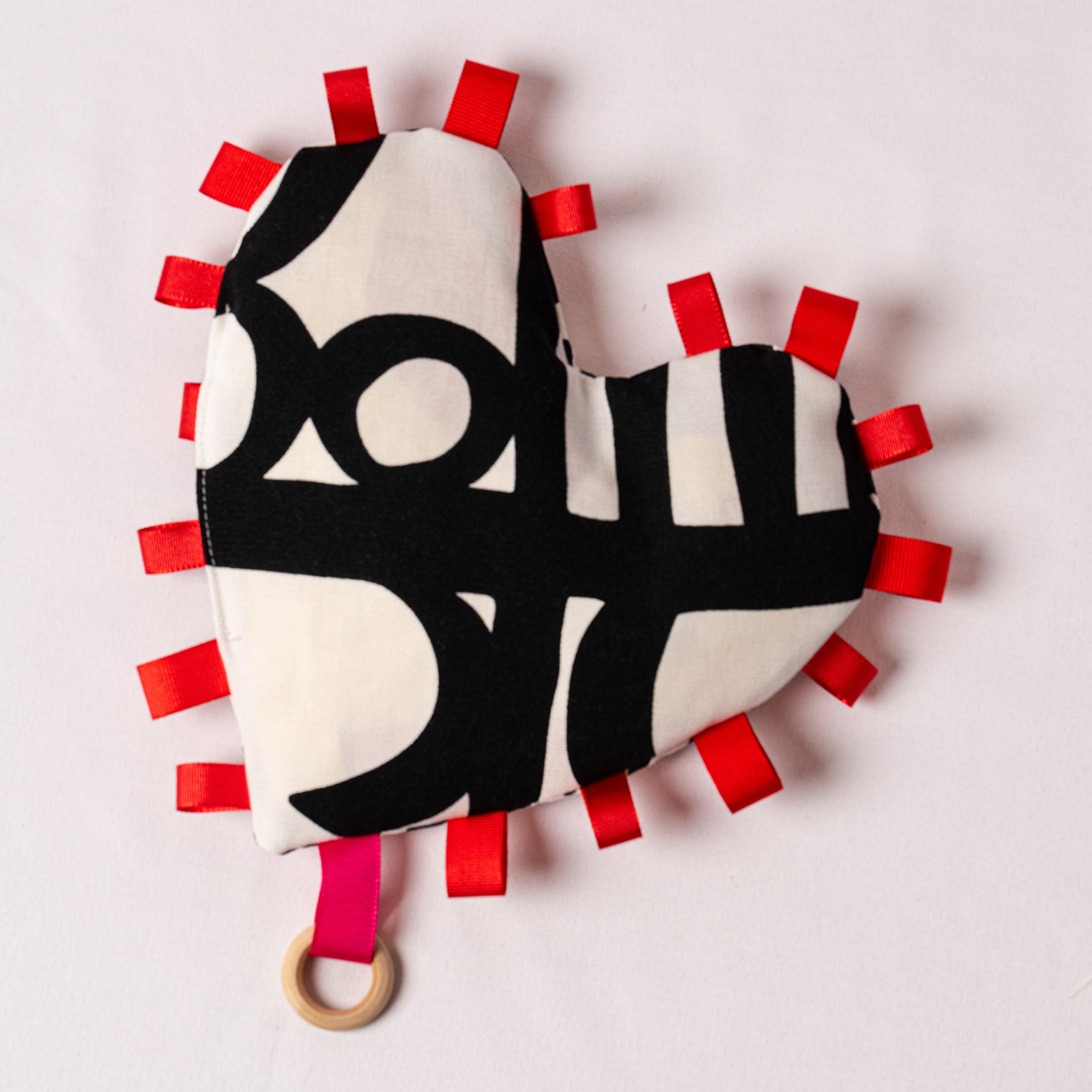 Gioco sensoriale a forma di cuore cucito a mano.