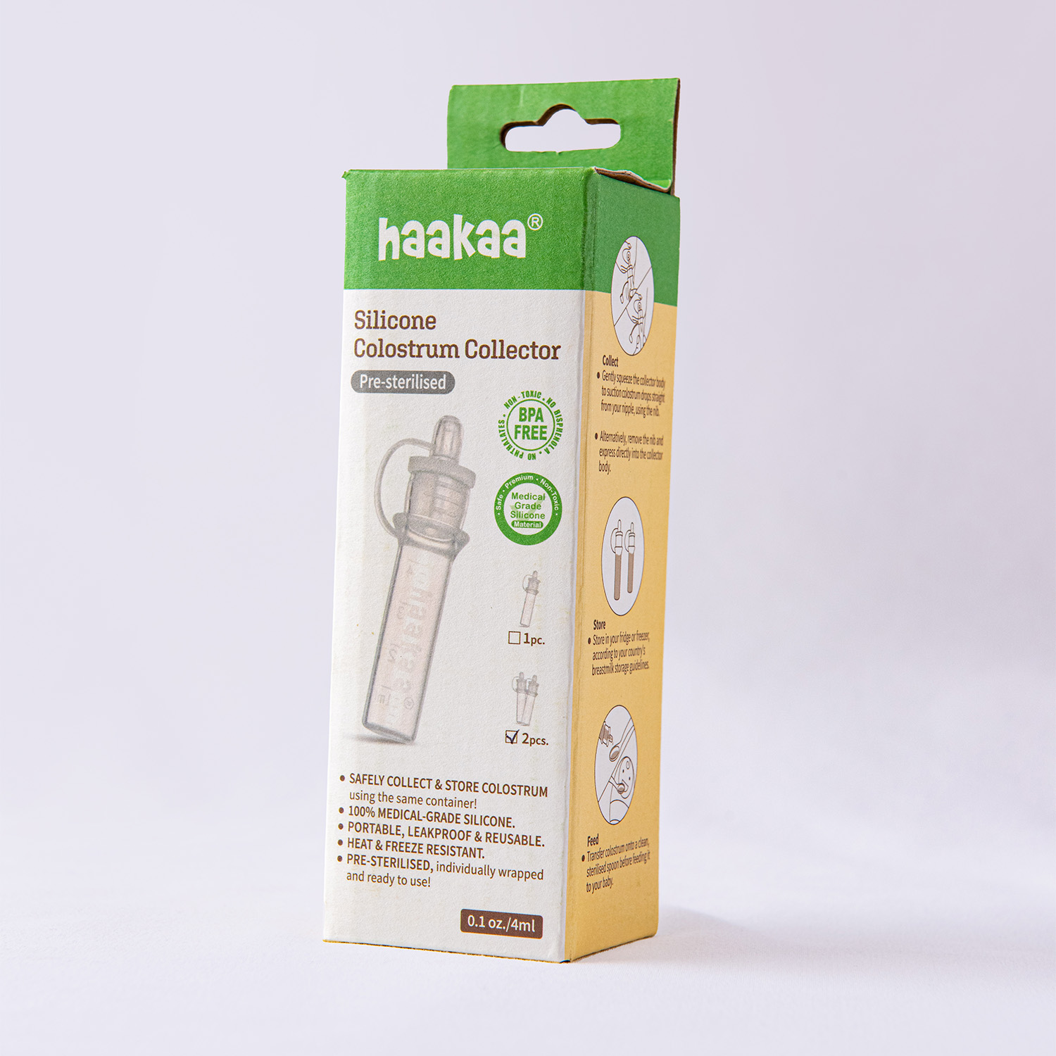 Il raccoglitore di colostro in silicone Haakaa è il primo design al mondo che offre alle mamme la possibilità di estrarre il colostro prima e dopo la nascita in un contenitore sicuro e facile da usare.