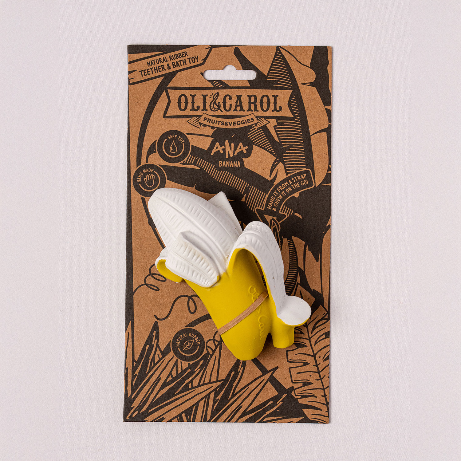 Banana in gomma naturale perfetta per le gengive di tutti i bimbi e per familiarizzare con la frutta e verdura da subito!