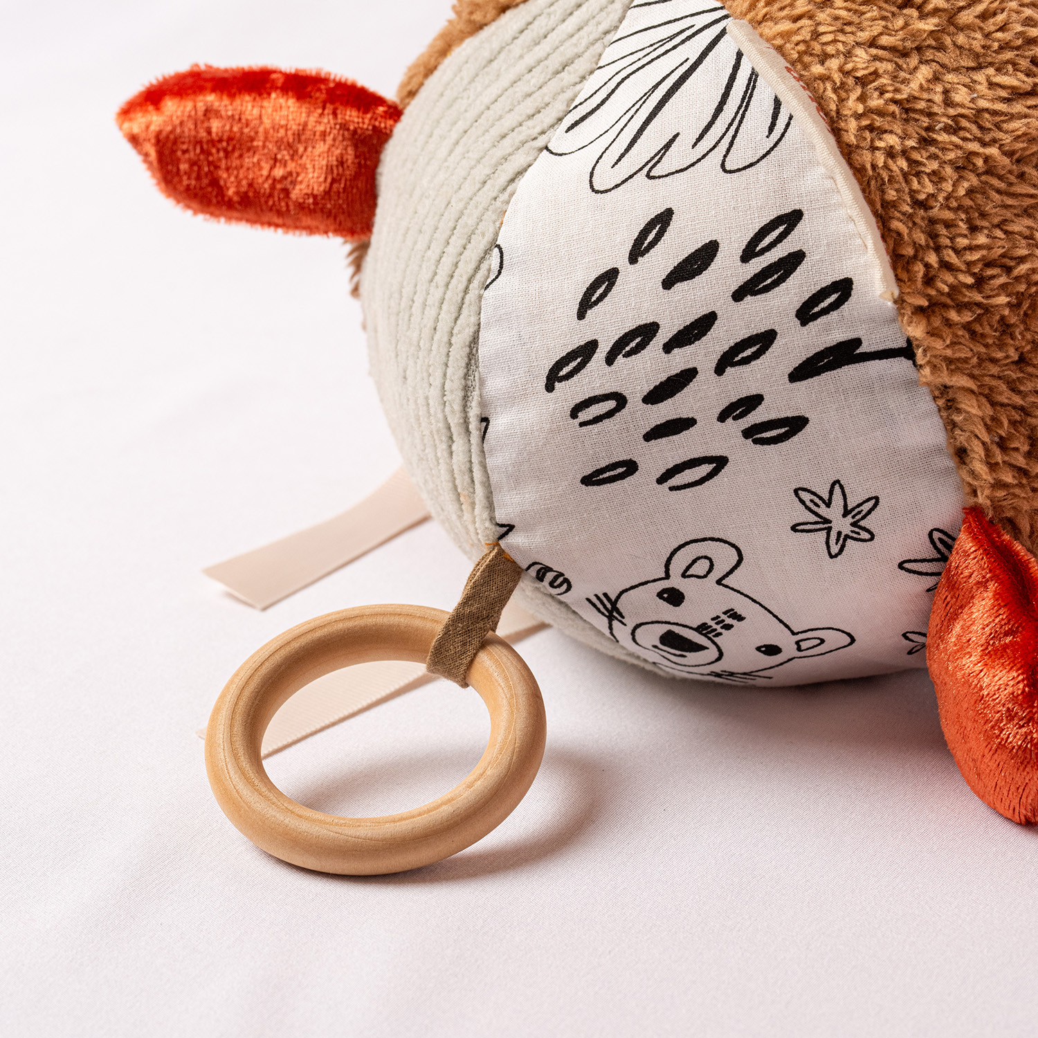 Questa morbidissima palla è realizzata interamente a mano, dispone di molte linguette e sonagli diversi per stimolare i sensi della vista, del tatto e dell’udito. Ogni palla è un pezzo unico!