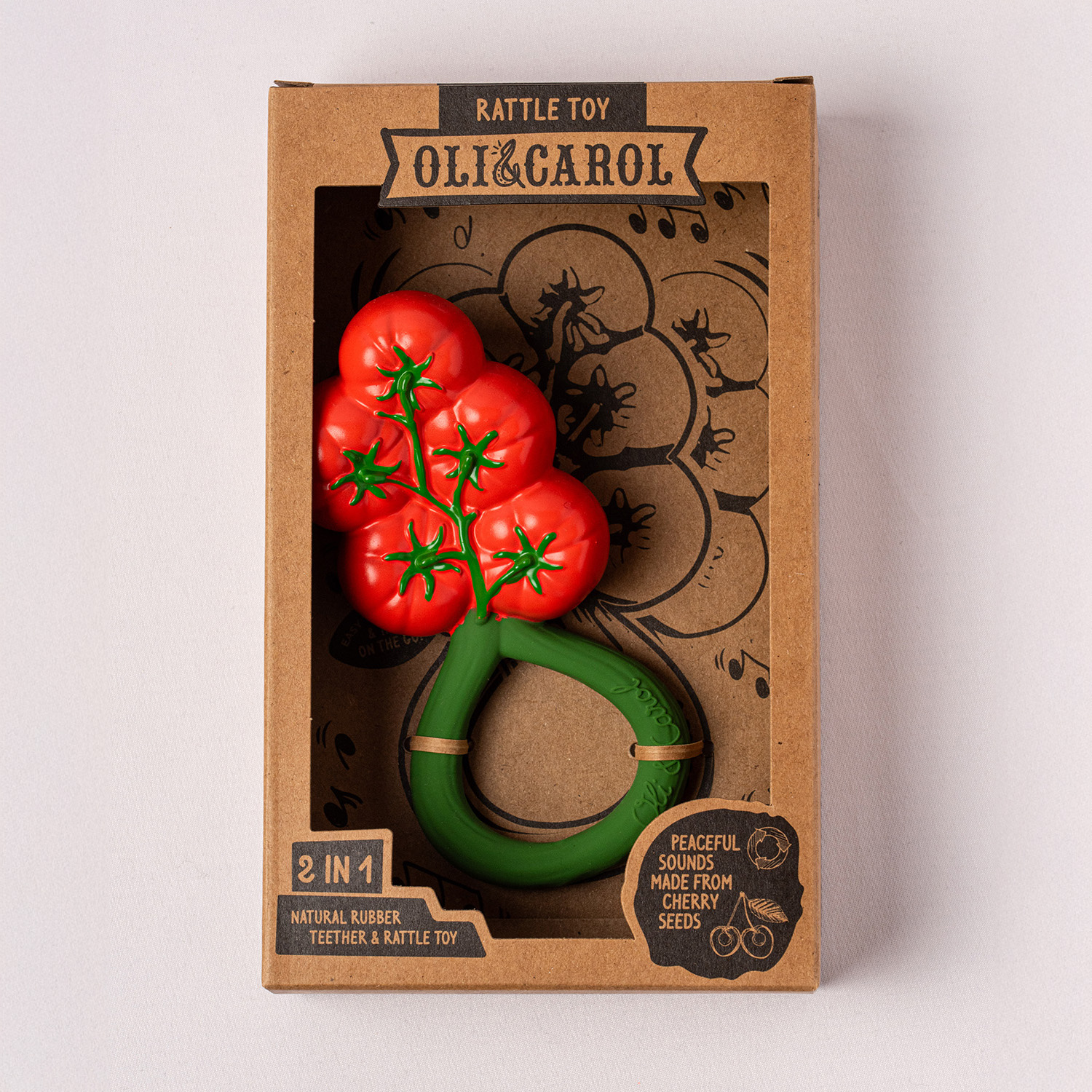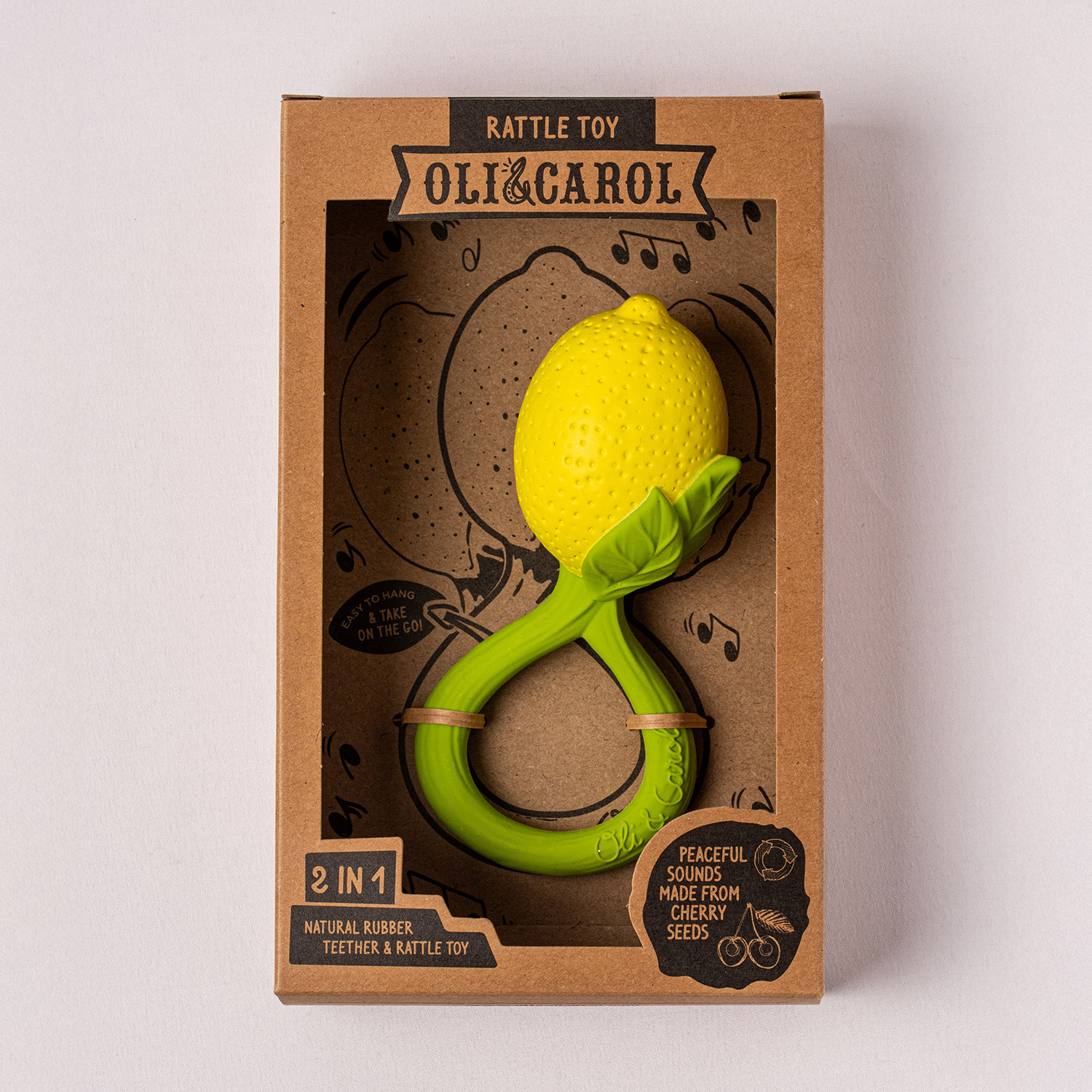 L’esterno è fatto in gomma naturale e all’interno vi sono semi di ciliegio che fanno di questo massaggiagengive un sonaglio! 2 in 1 ! Questo sonaglio è stato disegnato insieme ad otorinolaringologi certificati, con i quali è stata creata la perfetta altezza del suono, che aiuterà i bambini a calmarsi invece di sovrastimolarli.