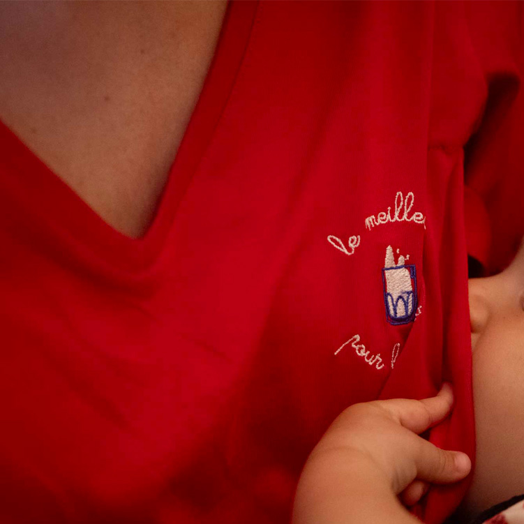 T-shirt pensata per l’allattamento con comode aperture zip ai lati. Pregnancy friendly.
