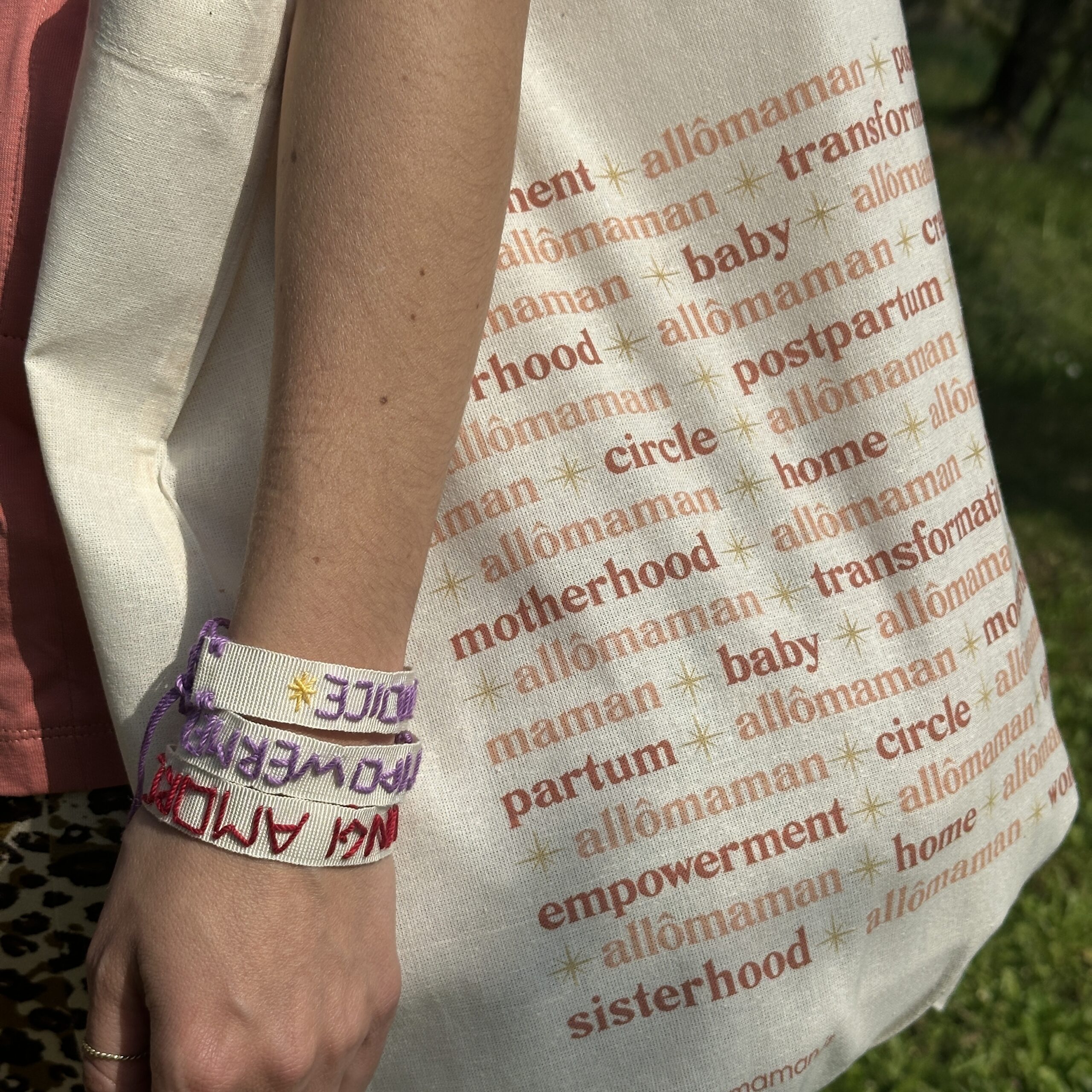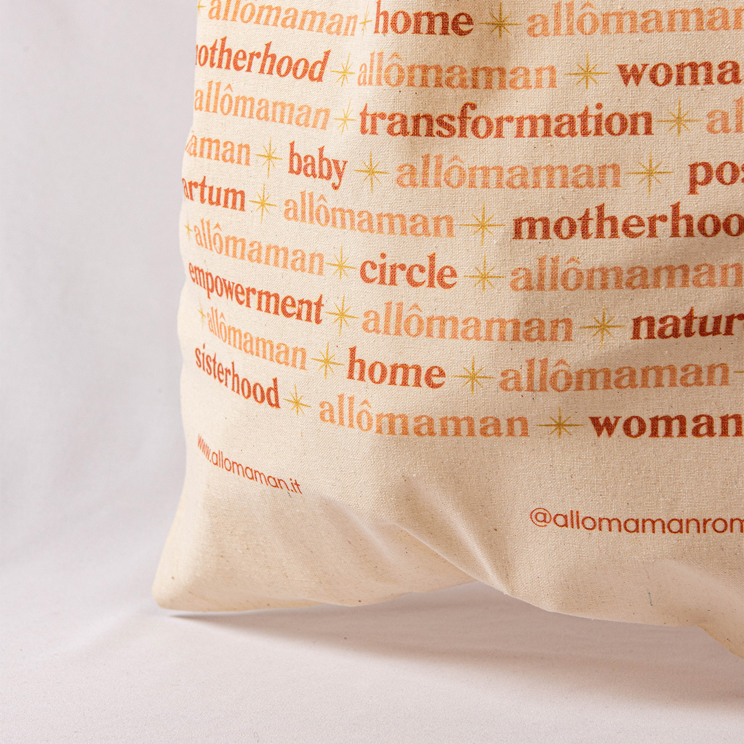 La prima tote bag del brand con la font inconfondibile di Allô maman! Un disegno unico composto dalle parole chiave che più risaltano sui nostri social e sul nostro sito.