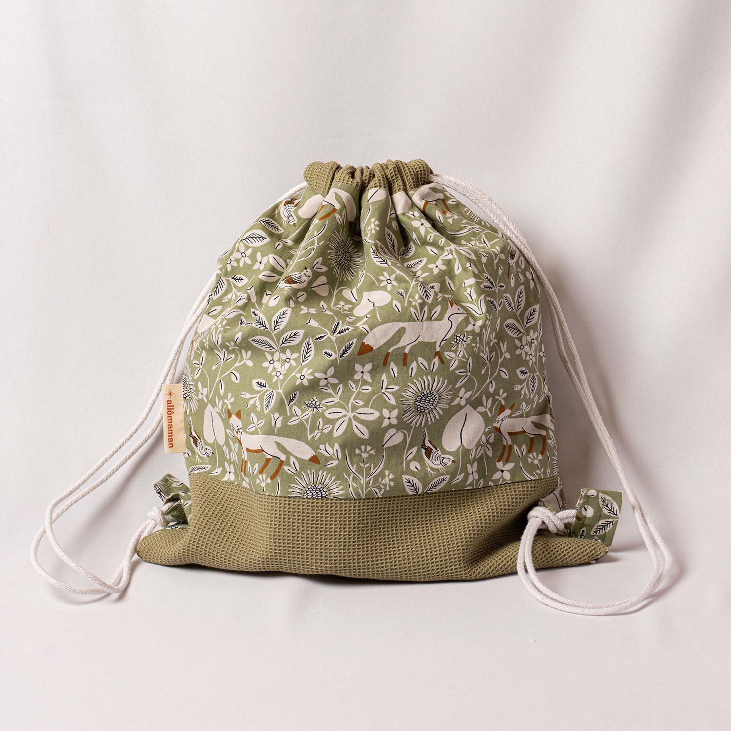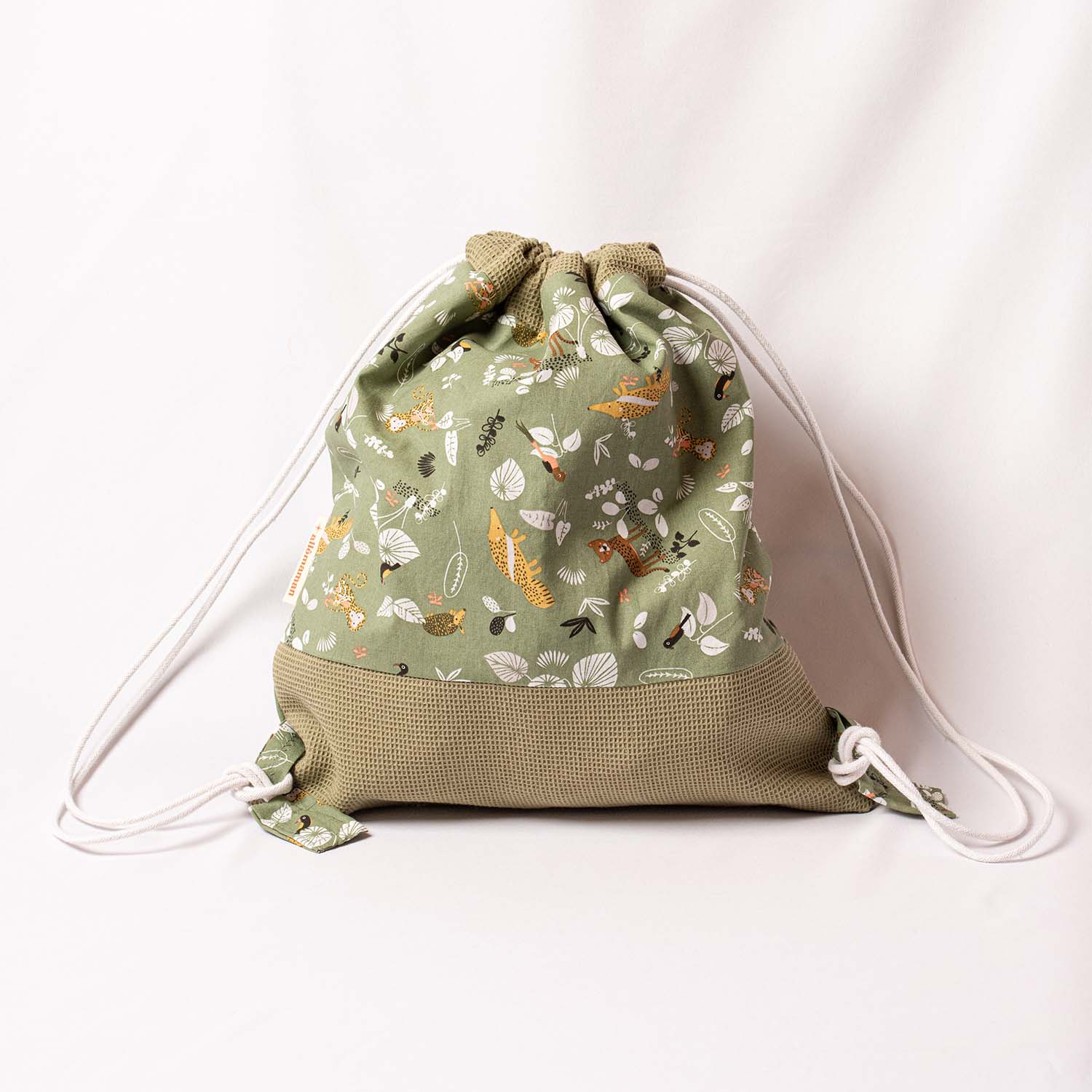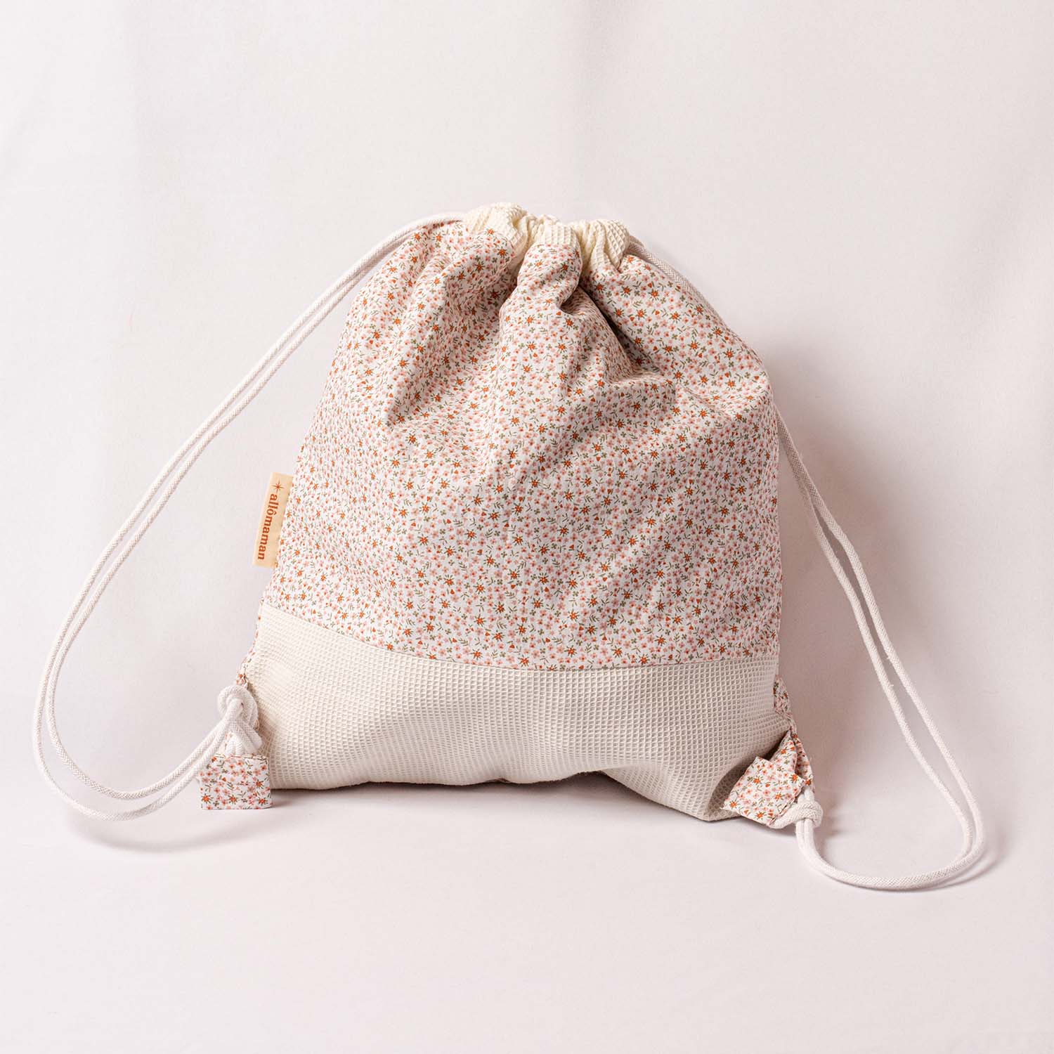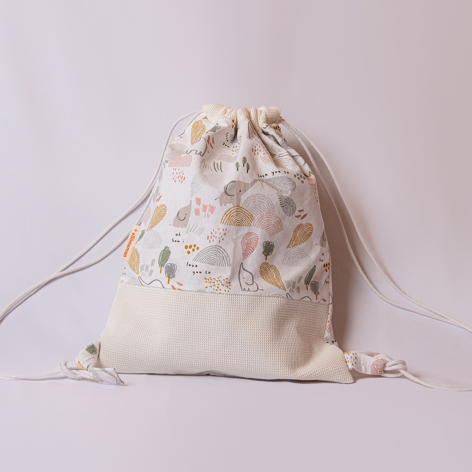 Zainetto in cotone certificato OEKO-TEX. Possibile fare il completo con l’accappatoio, l’asciugamano e il fasciatoio!